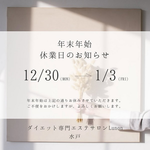 12/30〜1/3の期間、年末年始お休みとさせていただきます。