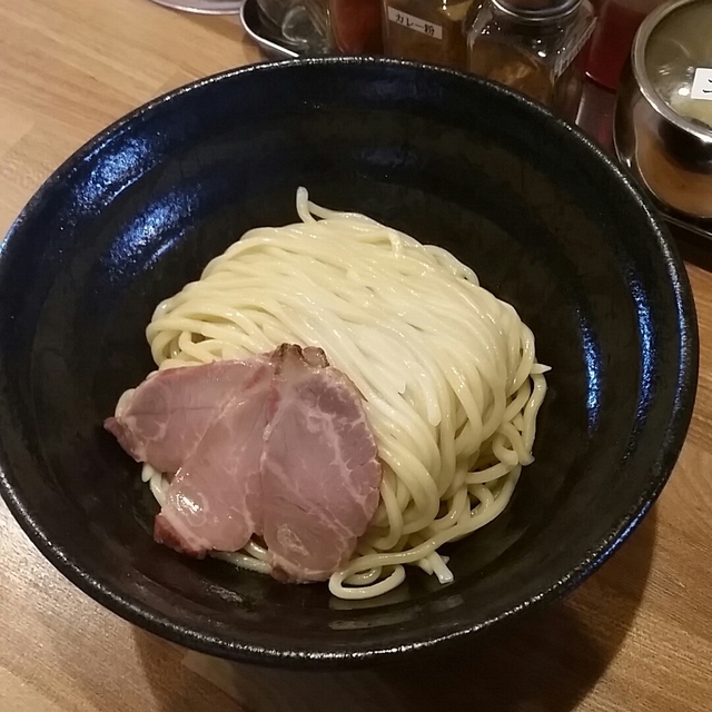 平日のお昼に伺いました。 12時少し前でしたが、既に店の外まで並んでいて、後からも続々と来ていました。 ちなみに、食券を買ってから並ぶタイプです。 つけめんとまぜそばをギリギリまで迷い、まぜそば(大盛:無料)を注文、追い飯も無料だそうです。 麺はまぜそばとしては標準的な太さで、つるつるモチモチで、麺そのものがおいしいです。具は、豚のチャーシュー3枚と太めの四角柱のメンマ、タマネギ、万能ネギ、刻み海苔で、混ぜることで味に変化がつくのに加え、テーブル調味料が充実しており、大盛でも最後まで飽きずにおいしく食べられます。40代後半なので最後はレモン汁でサッパリといきました。 店員さんも若くて活気があり感じ良く対応してくれるので、満足感のあるお昼になりました。 つけ麺やメニューも様々あるので、また伺いたいと思います。