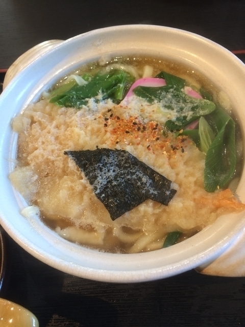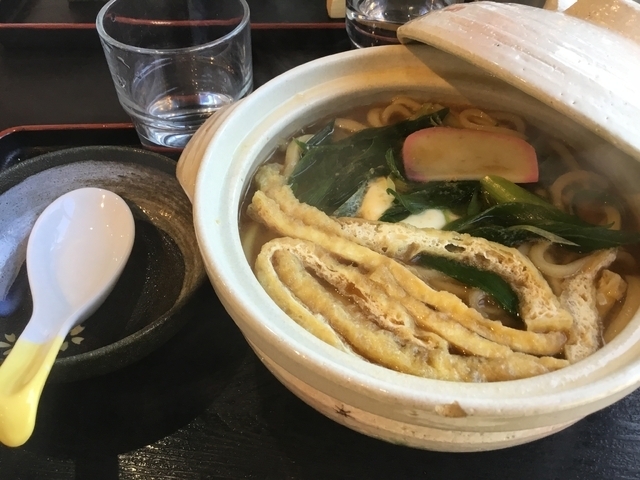 鍋焼きうどんを頂きました。見た目すっきりと澄んだお出汁なのでサッパリ味かと思いましたが、意外としっかり塩気がありました。細くて柔らかいおうどんが美味しいです。
