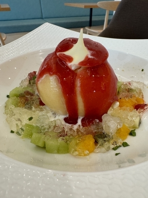 期間限定で桃のプレートをカフェスペースでやっていました!ミントの爽やかな香りとベリーソースが相性抜群です。