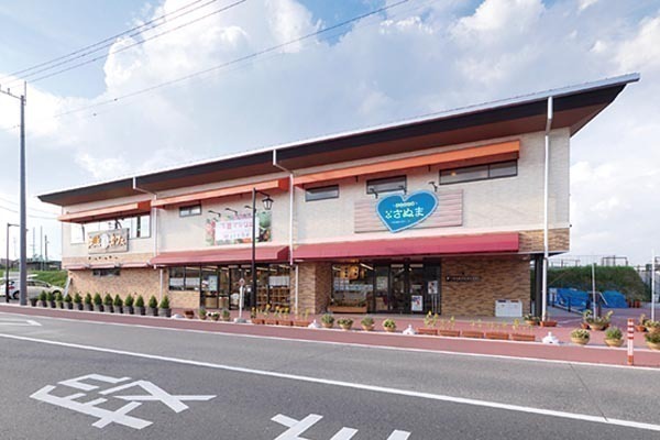 「さん歩の駅 サン・SUNさぬま」の1階『下妻マルシェ』。下妻産の新鮮野菜や果物、加工品をはじめ、茨城県内の酒蔵で造 られている自慢のお酒など、県内物産品も多数販売しています。お土産品や普段づかいにもとっても便利。2階には8代葵カフェと観光案内所があります。下妻観光の際には是非お立ち寄り下さい。