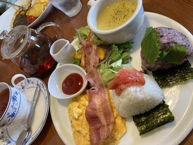 モーニングのおにぎりプレートをいただきました!飲み物代に350円プラスで食べられます!ボリュームも味文句なしです!