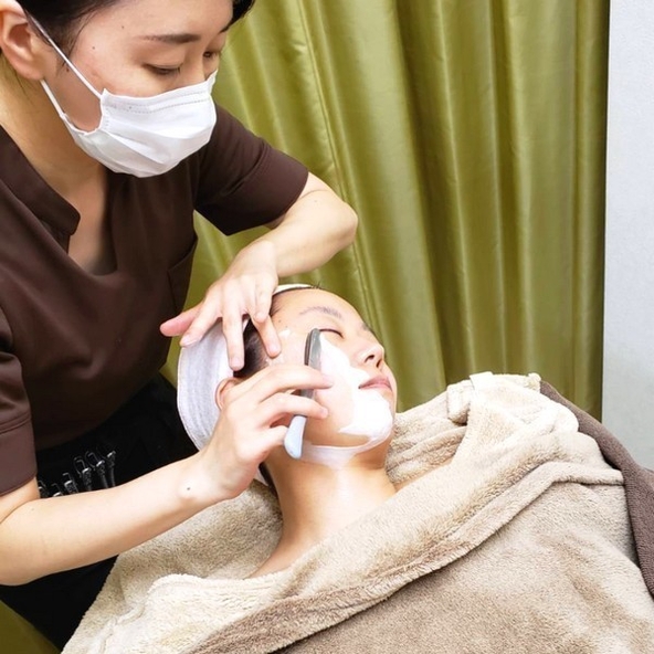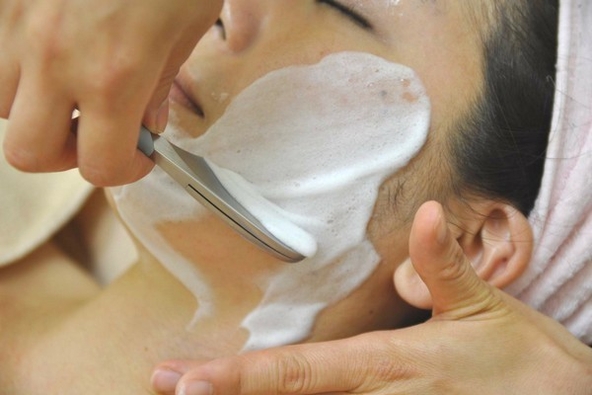 ◆レディースシェービング(60分) 3,700円 〈施術の流れ〉 ・カウンセリング ・襟足クレンジング&シェービング ・化粧水、美容液でお仕上げ ・お顔のクレンジングとお顔そり前の保湿(美容液塗布) ・お顔そり(もみ上げ、耳、小鼻も含む) ・眉剃り、眉カット(ご希望に合わせて) ・化粧水、美容液、美容乳液、UV仕上げ ・頭と肩のプチマッサージ 【部分剃りメニュー】 ◆襟足シェービング(15分) 2,000円 ◆眉剃り、眉カット(30分) 2,000円 ◆首もとシェービング(20分) 2,000円