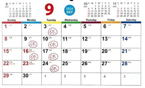 【9月の定休日】