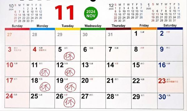 【11月の定休日】
