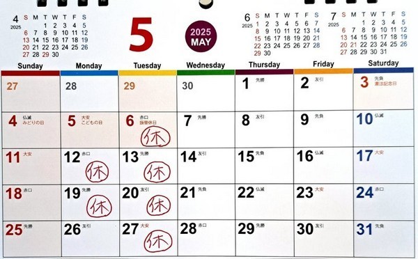 【5月の定休日】