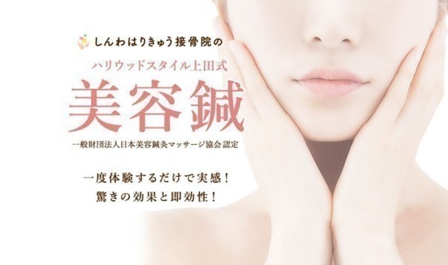 東洋医学には、「顔は心と身体を映し出す鏡」という考え方があり、この考え方のもと、顔に鍼を打つだけでなく、全身の調整を鍼によって行っていきます。 独自のリフトアップのツボを使うことと、他の美容鍼とは全く違う鍼の打ち方をすることにより、顔に鍼を打つ本数を最小限にし、最大限のリフトアップ効果を出していく美容鍼、それが当院で行っている『ハリウッドスタイル上田式美容鍼(R)』になります。 当院の美容鍼は顔に鍼を50~100本近い本数打つ、顔に打った鍼に電気を流すといった事は一切行いません。 お顔には15~20本程度の本数の鍼で、しっかりと効果を出していきます。 また、ハリウッドスタイル上田式美容鍼(R)は、「一般財団法人日本美容鍼灸マッサージ協会」からきちんと認定を受けた、「認定美容鍼灸師」にしかできない美容鍼になります。 認定美容鍼灸師である当院院長による、安全性の高い美容鍼です。 ※1 財)日本美容鍼灸マッサージ協会の登録商標です。