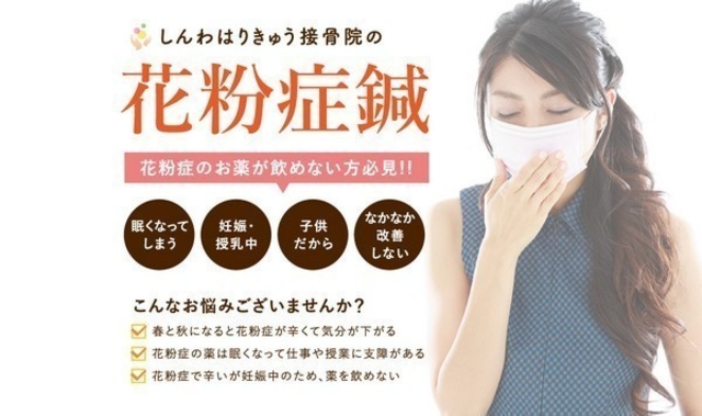しんわはりきゅう接骨院での花粉症の鍼施術は、1回の施術で良い変化をしたとしても、そのお身体の状態はなかなか安定しません。 しっかりと症状改善をしていくには、週2回以上、計5~6回の通院をして施術を受けて頂くのが理想です。 「花粉症の治療に鍼」と、ほとんどの方は考えたり選んだりしないと思います。 もちろん個人差はありますが、長年花粉症の薬が手放せなかった方が3回の施術で改善した、薬を飲まなくてもいられるようになったなど、喜びの声も実際に頂いております。 長年、花粉症でお悩みの方は一度、しんわはりきゅう接骨院にご相談ください♪