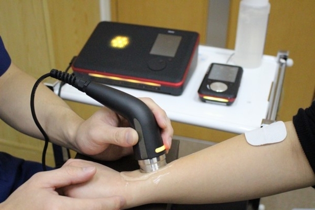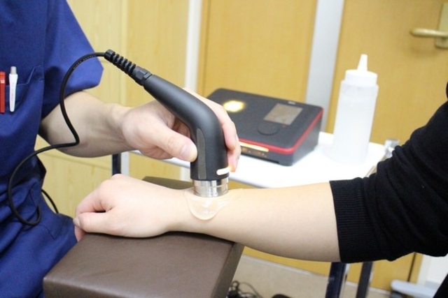 日本で唯一の圧力波治療器です。 欧州をはじめ、リハビリテーション先進国を含む世界65ヵ国で広く使用されているものです。 プロスポーツ選手も身体のケアに実際に使用しております。 治療の対象となるのは使いすぎによる痛みや負担のかけすぎによる痛み、いわゆる「慢性的な痛み」になります。例をあげると、歩き過ぎ・走り過ぎによる足裏の痛み、野球やテニス、ゴルフなど過度の負担による肘の痛み、使い過ぎによる指の腱鞘炎などにはとても効果的です。 反対にケガや寝違え、ぎっくり腰には使用できません。 今まで、どこでどんな治療をしてもよくならないような不調を抱えている方、是非一度治療を受けてみてください!! ※ショックマスターの適用かどうかは問診・検査をして判断させて頂きます。