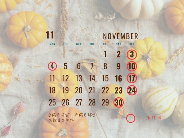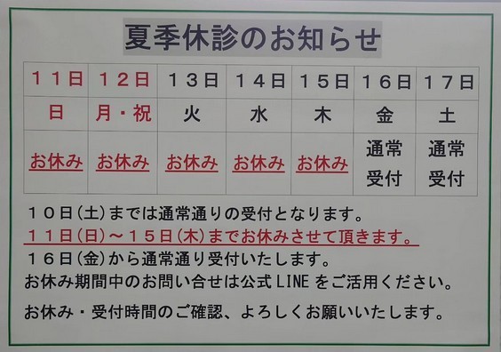 11日(日)〜15日(木)までお休みさせて頂きます。