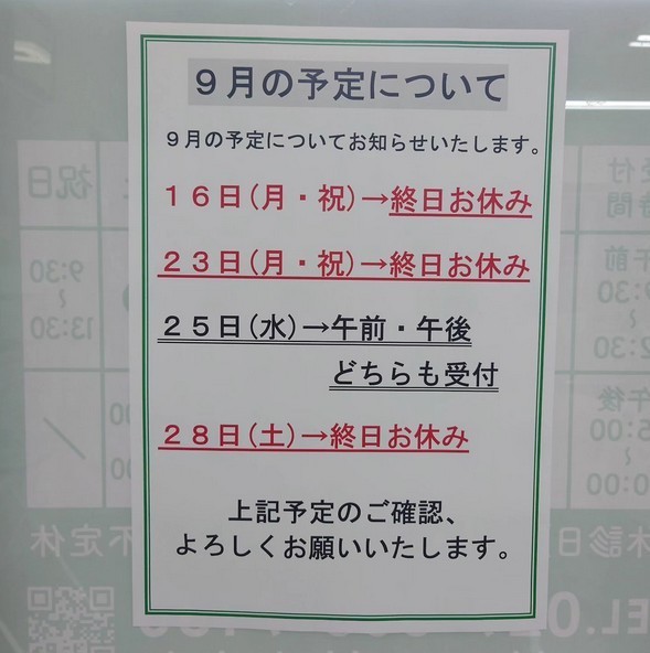 16日は午前も受け付けておりますのでお問い合わせください(^^)