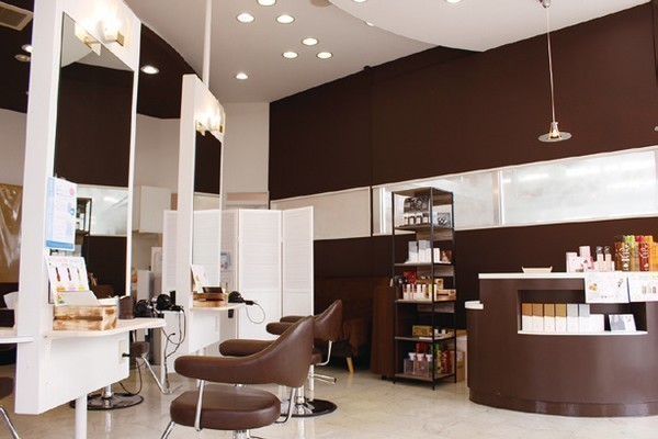 白とブラウンの落ち着いた店内です。ゆったりくつろぎながら施術を受けることができます。
