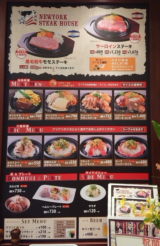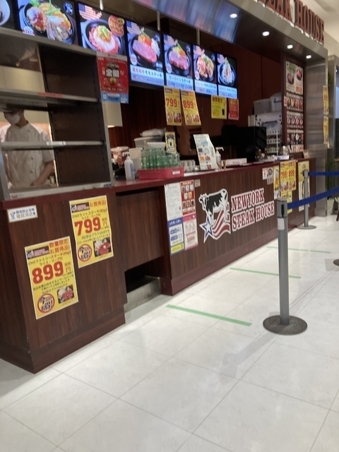 フードコートにあり気軽にステーキが食べられる。いきなりより安いと思います。 ペーパーの油はねガードがついて来るので、自分で持つのも安心でした。