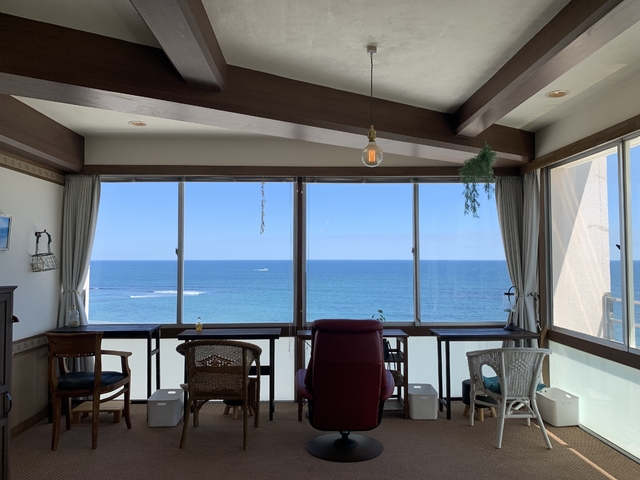 ここに座るだけで勝手に癒されていく…4席カフェで静かな海時間をお過ごしください。