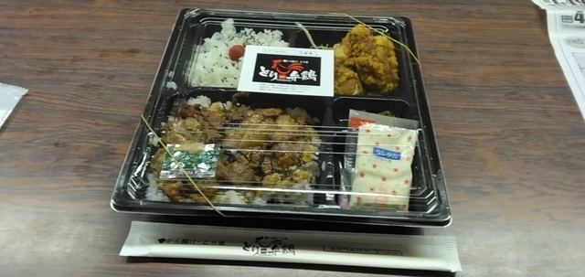 この日もテイクアウト。 焼き鳥丼とチキン南蛮が入っているお弁当をオーダー。 ご飯が二つ、ボリュームたっぷりです。