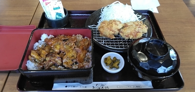 今回もテイクアウトで。 「どちらも食べれる重から弁当」という、とり重とから揚げが一緒になっているものです。 から揚げにはタルタルソースが付いていて、おいしくいただきました。