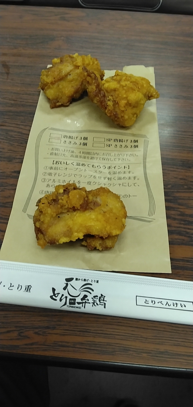この日のお昼はお弁当を持ってきていましたが、同僚がとり弁鶏さんに行くというので、帰りに唐揚げを単品で買ってきてもらいました。 ニンニクとショウガが効いたあいかわらずうまい唐揚げ。 ご飯のおかずはもちろん、ビールや酒のアテになります。