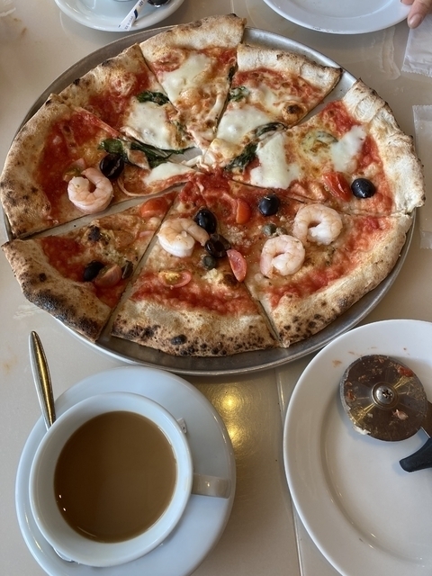 お店の雰囲気が、とにかくおしゃれ!薄焼きピッツァがとても美味しくて、何枚でも食べられそうです。アウトレットで歩いた後の、お楽しみになりました。