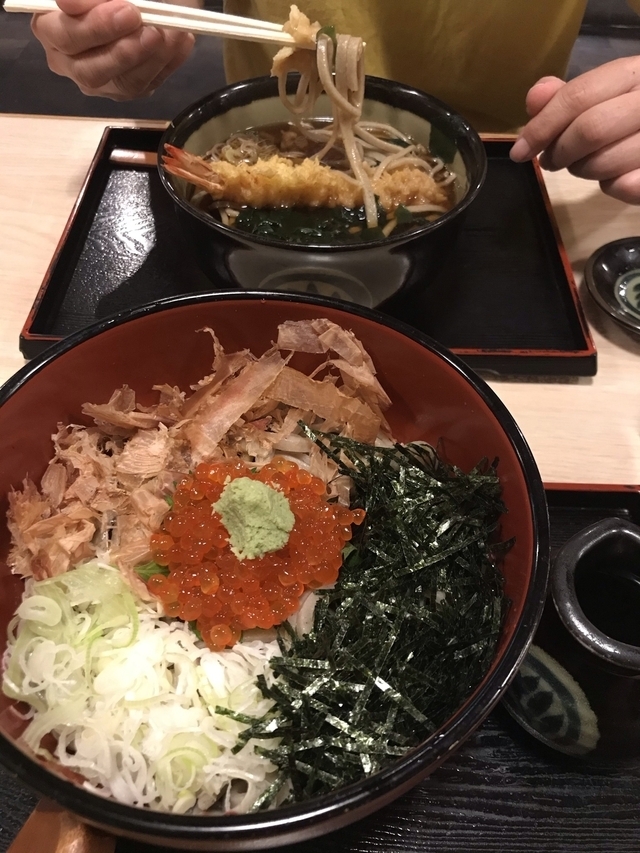ここに来たら絶対いくらおろしそば!!もう何度もリピートしてます!たっぷりのいくらに大根おろし、鰹節がトッピングされていてこしの強いそばとよく合います。