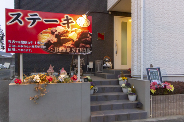 当店のオーナーは元プロレスラーの田上明!店内には、現役時代の雄姿がずらりと飾ってあり、週末には県内外から多くのファンも来店しています。看板メニューは店名通りステーキです。150g~なんと1キロへのチャレンジも!?牛の赤身、ハラミ肉を使用したステーキは箸で切れる柔らかさ。ステーキには、テリヤキやチリ、甘口、辛口、にんにくなどなどたくさんのソースをお持ちします。お好みの味付けで食べてください。