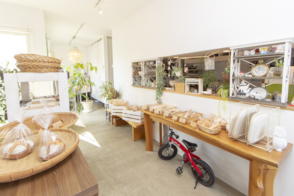 天然酵母と国産小麦を使い、シンプルなパンを作っています。生地には卵、牛乳、バターを使っておらず、身体にやさしく、大人から子どもまで家族みんなで安心して一緒に食べていただけます(※アレルギー完全対応ではありません)。食パンやカンパーニュ、フォカッチャといった定番の主食パンから、可愛い形の「おひさまパン」、レーズンとナッツのお顔がキュートな「ふくろうあんぱん」人気です。冬はチョコやさつまいもを使ったパンや、夏はしらす&ネギなどその時期ごとのおいしさにも出会えます。