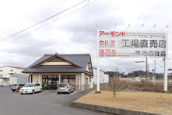 「豆のいけのべ」では、落花生の栽培から加工、パッキングまで全てを自社で手がけています。牛久沼のすぐほとりに構える工場に併設した直売店では、煎り立ての落花生のほか、アーモンドやくるみ、大豆など美容と健康に良いナッツ類を販売。皇室献上品にも選ばれた地元ブランド「筑波落花生」も取り扱っております。おつまみにぴったりの豆菓子、料理に便利な落花生ペーストや粉末などもご用意しています。贈答用に、ご自宅用に、ぜひご利用下さい。