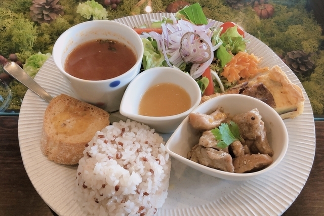 イーアスつくばのアウトモールにあります。 店内は明るく、植物があちこちにあり癒されます。 ランチプレートは、定期的に変わるチキンとポークのメイン料理に、サラダ、スープ、ライス、スモールキッシュ、バケットを一皿で楽しめます。 それぞれの料理が丁寧に作られて、ドレッシングもオリジナルです。