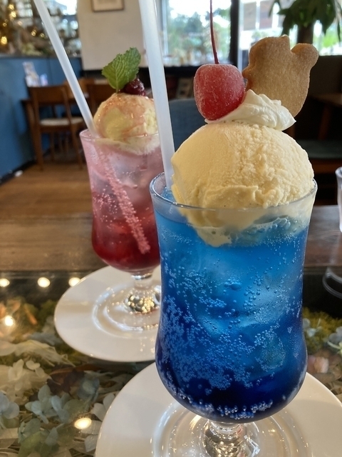 レギュラー化したというブルーハワイのドリンクをいただきました!上に乗ったリスのクッキーがかわいい!アイスも濃厚でおいしい!