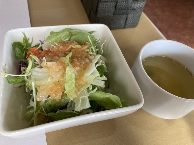 すべてのメニューにスープ、サラダ、ライスが付きます