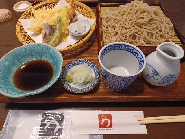 いつもは週末の訪問なので案内されるまで待ちますが、今回は平日だったのですぐに案内してもらえました。 注文したのは「天せいろ(並)」でした。並・上・特上では天ぷらの数が違うだけだったので、小食な私には「並」でも苦しい位満腹になりました。 お蕎麦は細くて上品、喉ごしもよくてツルッといただけました。蕎麦つゆは、鰹の出汁が効いていて丁寧に作っていることがわかります。 蕎麦つゆの他に天つゆが付いているのも嬉しいですね。美味しくてキレイに平らげて苦しくなってしまいましたが大満足です♪