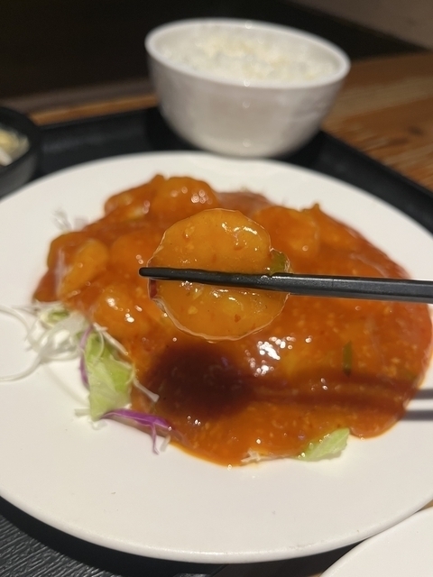 海老のチリソース定食めちゃくちゃおいしい!ぷりっぷりのエビとピリ辛のソースが相性抜群!ご飯が進む味付けです!