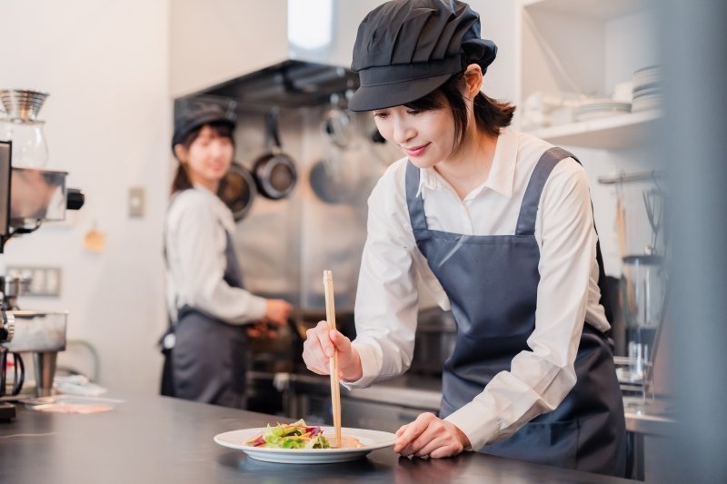 配膳やレジなどの接客と、盛り付けや簡単な調理補助をお任せします。難しい作業はなく、少しずつ覚えていける内容です。