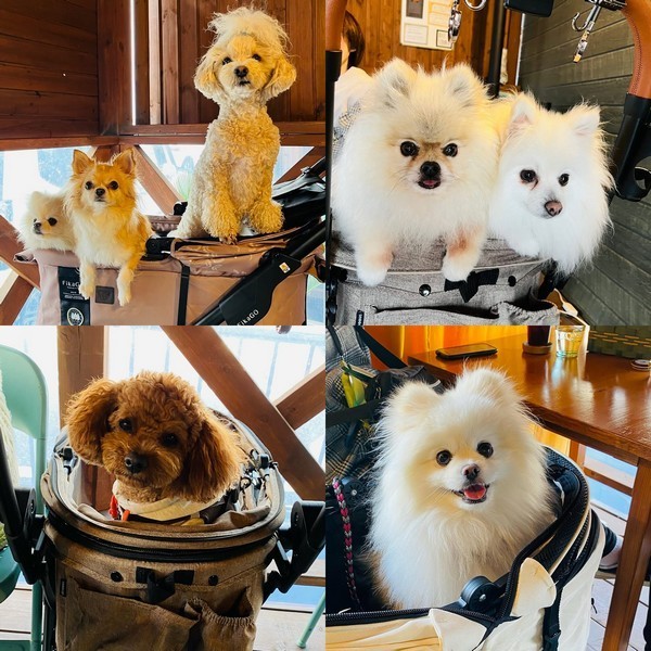 ゴールデンウィーク中、県外から、海浜公園ネモヒラのあと、cafeべるどぅーらにたくさんのわんちゃんがご来店してくれました♡