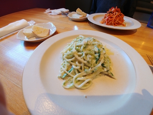 ディナー予約し、家族で利用しました。 クーポン利用させていただきました。 皆、違う種類のパスタを頼み、それぞれが具材とパスタの絡みが良い感じで、美味しくいただきました。 量はやや少なめでしたが、雰囲気もあいまって、穏やかにすごせました。ごちそう様でした。
