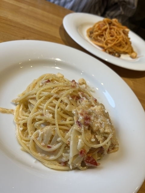 1900円で前菜、パスタ、フォカッチャ、ドリンクがついてきます。パスタはアルデンテでクリームソースが濃厚で美味しかったです!