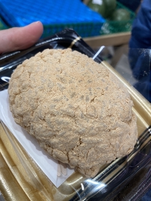 「いしげだんご」で知られたこちらのお店。その一商品である「大盛おはぎ(きな粉)」が、訪れた「道の駅常総」農産物直売所に陳列されていたので、1個土産に購入しました。原料として茨城県産もち米と北海道産小豆を使用し、大きな丸いおはぎにして、その表面にきな粉をまぶしてあります。柔らかい餅の中にはたっぷりと漉し餡が詰まっており、総重量は200g。餡は上品な甘さで美味しく、飽きが来ません。製造日が消費期限日と足の速いのが少々難ですが、柔らかい内が最も美味しいということでしょう。