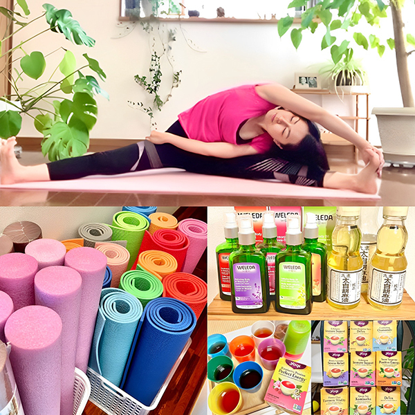 ハーブティーで一息、足のセルフオイルマッサージなど、五感で楽しめるヨガタイム♪