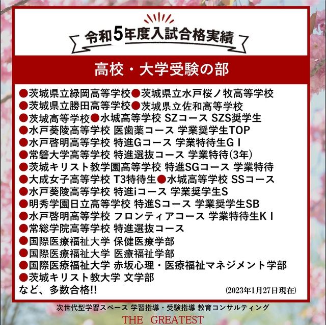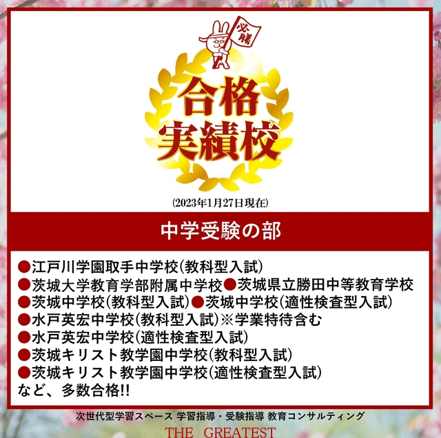 茨城県ひたちなかの学習塾・予備校★難関・名門校に多数合格!中学受験はザ・グレイテストにお任せください