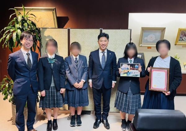 先日、アカデミックコース生はチャレンジKIDSコンテストにてベストチャレンジKIDS賞(グランプリ)を受賞いたしましたことに際し、市長室へ表敬訪問に伺いました。