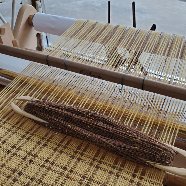 はたおりは地機2台、高機2台、北欧の大型織機2台の計6台。
