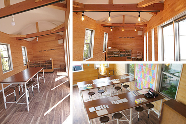 通常は印刷加工専門店「DECO-CARD」のお打合せスペース、イベントスペースとして活用している、丸屋根の温かみのあるトレーラーハウスです。