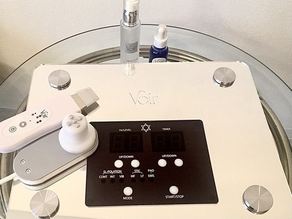 ◆シミデトックス1回(60分) 6600円 ≪施術の流れ≫ ①クレンジング ②洗顔 ③フェイシャル・デコルテマッサージ ④ダブル美容導入 ⑤シミケア ⑥保湿・鎮静パック ⑦お仕上げ 【痛くないシミケア】 国産安全基準をクリアしたシミ専用の美容機器を使用したケア。 特殊な周波数の刺激をシミの部分にあてることによって肌に近いシミを浮き上がらせ、長年蓄積されているメラニンのターンオーバーを促進します。