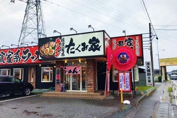 たくみ家の麺は濃厚なスープにしっかりと絡む茨城では珍しい特注太麺。麺の固さ・濃さ・油量をお好みでオーダー出来るのも嬉しいポイント。21時以降は大盛り無料!自家製チャーシューと半熟トロトロ味玉も堪らない逸品です。