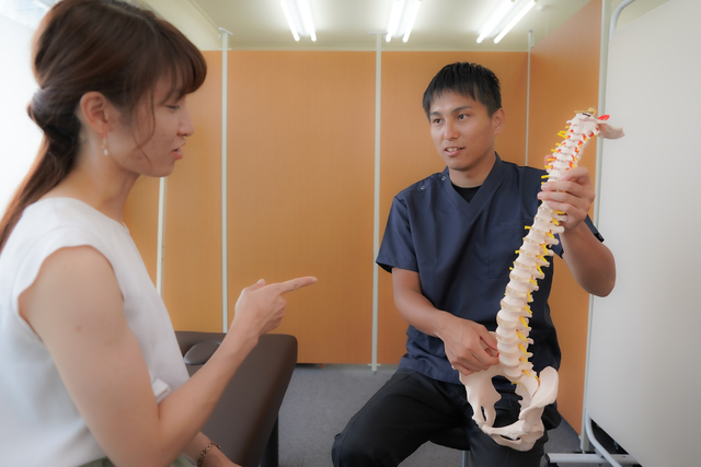①施術後に再検査を行い、身体の変化を確認して、体感してもらいます。