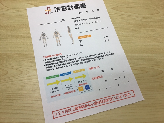 ③治療計画書(お身体の状態、治療後の注意点、来院ペースの記載)をプレゼントしています。