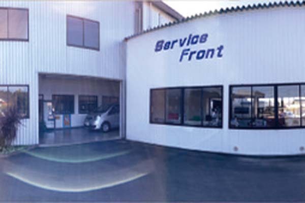 向かって左手が整備工場、右手は車検ステーション、右奥には板金工場を併設しております。
