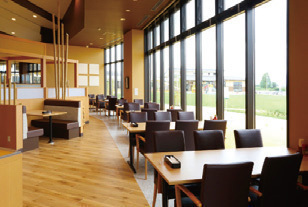 外が見える開放的な店内で、地元食材を楽しめる