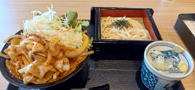 道の駅は2回目ですが、初めて食べに来ました。今回は、インターネットで調べて、ピリ辛キングポーク丼を、食べようって思って来ました。そしたら、うどんのセットができるようで、セットにしました。ピリ辛キングポーク丼は、肉がやわらかく、ピリ辛の肉、たまねぎとキャベツを食べると、辛さがやわらかくなり、ごはんにも味がしみて、とてもうまかったです。また、うどんは、のどごしが良く、歯ごたえがあり、これもうまかったです。ごちそうさまでした。