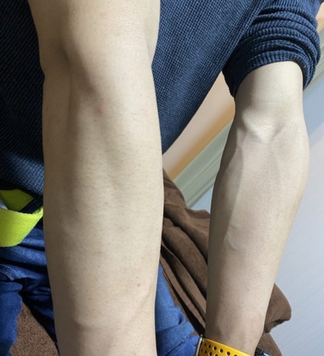 月に1回の腕脱毛を2回やりました。 2回目が終わってさらに1ヶ月がたちました。 1ヶ月間剃らずに放置していたみたいなんですが全然毛が生えてきていません♪ 腕脱毛をやる前は「元から濃いからやっても絶対意味ないよ!」と言っていたんですが やってみなきゃ分からない!! と言う事で「とりあえず!!」1回やってみました。 すると、、、脱毛1回で効果を発揮☆ 「全然生えてこなくなったーー!」 1ヶ月間放置してても生えてこないよ!って感激していました。 このお写真の方は顔から始まり今では胸,腹,腕,足とやっています。次はVIOも検討中との事でした☆