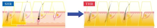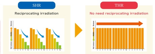 SHRは徐々に光が弱くなってしまうため同じ位置で何度か往復照射が必要でした。 THRでは光の強さが安定しているため、往復照射が不要になりました。そのため、スピードもアップしました。 最新且つ良質な脱毛をぜひご体験ください★